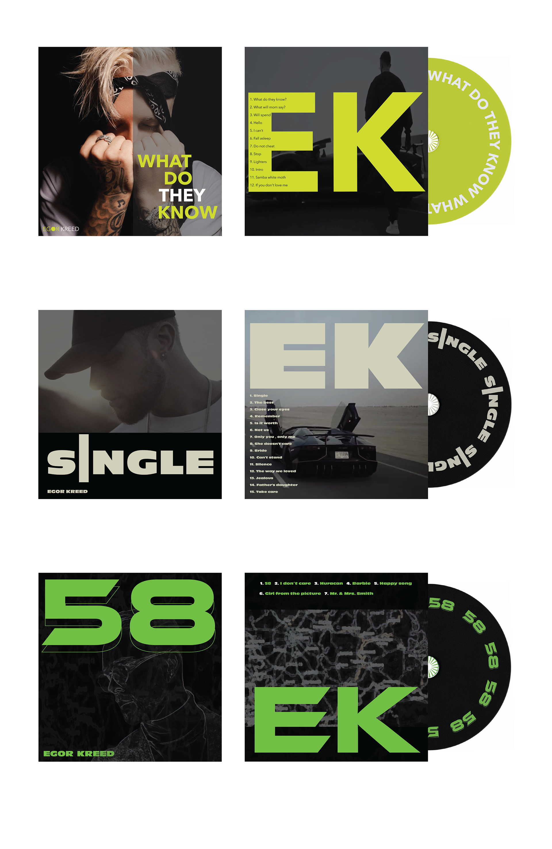 The boxset visually aligns with the energy of Kreed's energy and his music genre hip-hop/rap. I choose his photos as a background and bold fonts to show his style.
