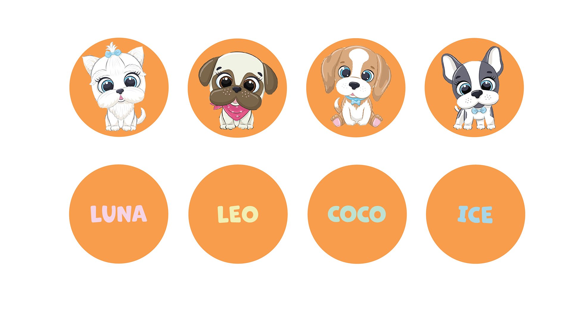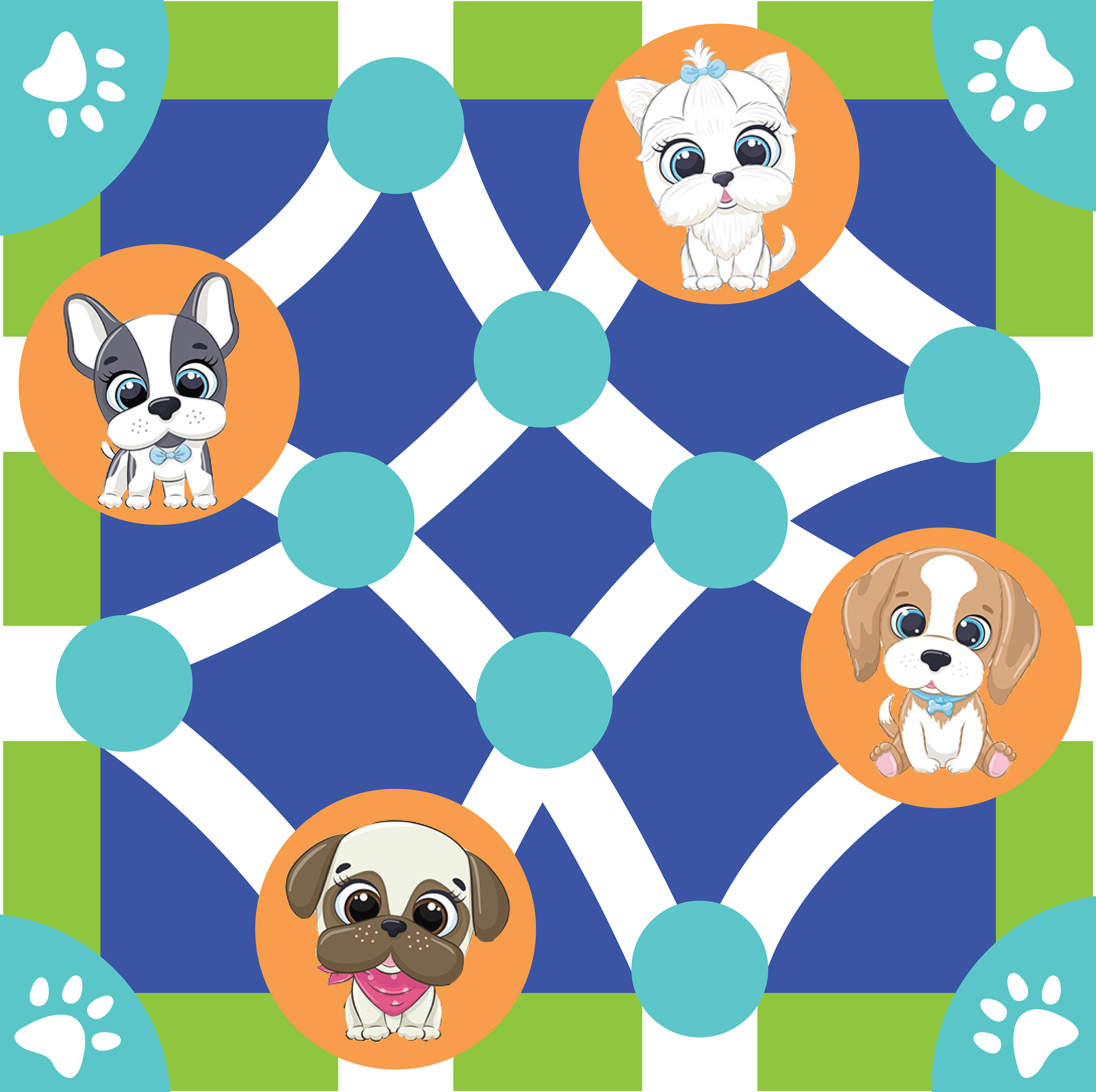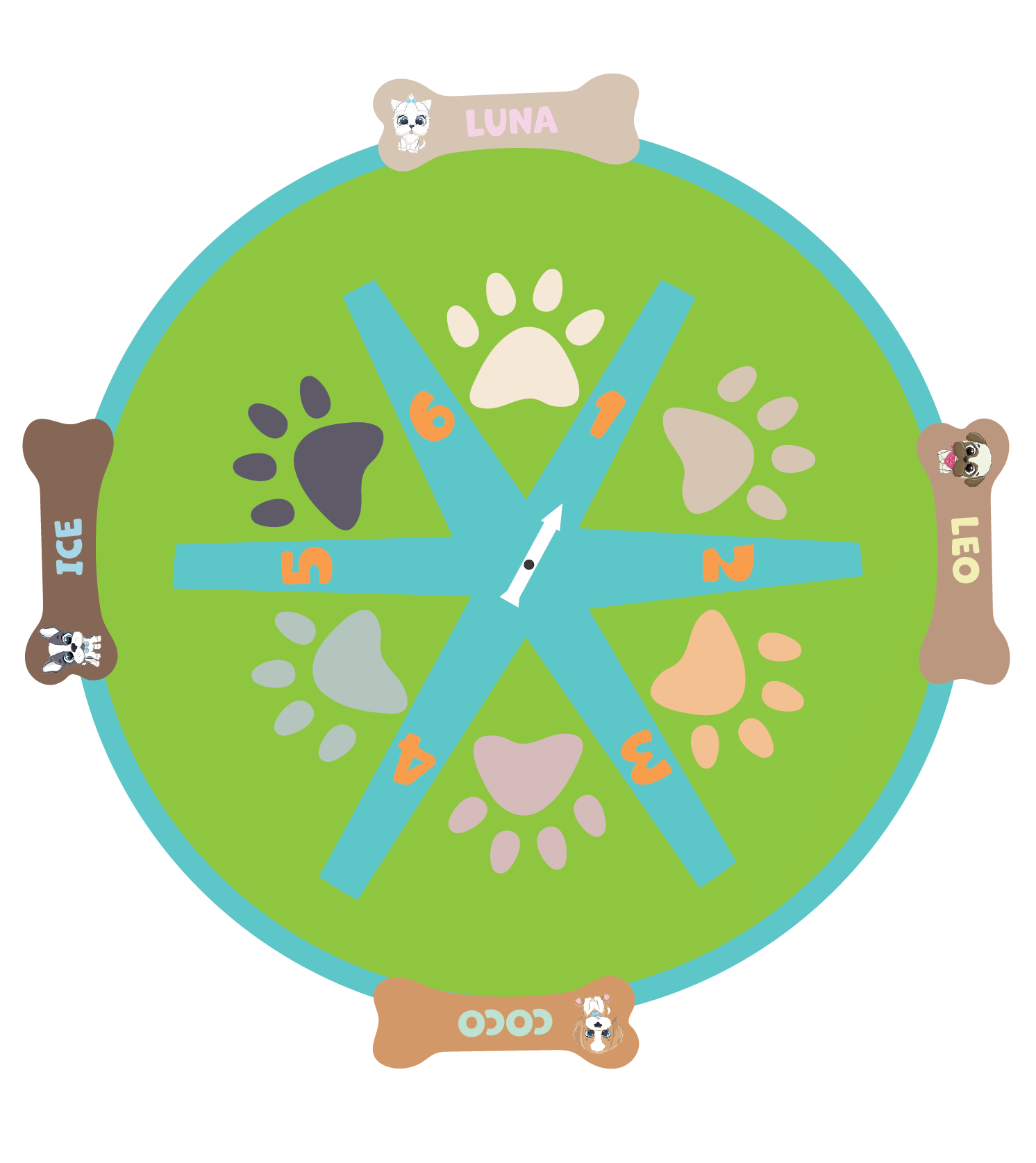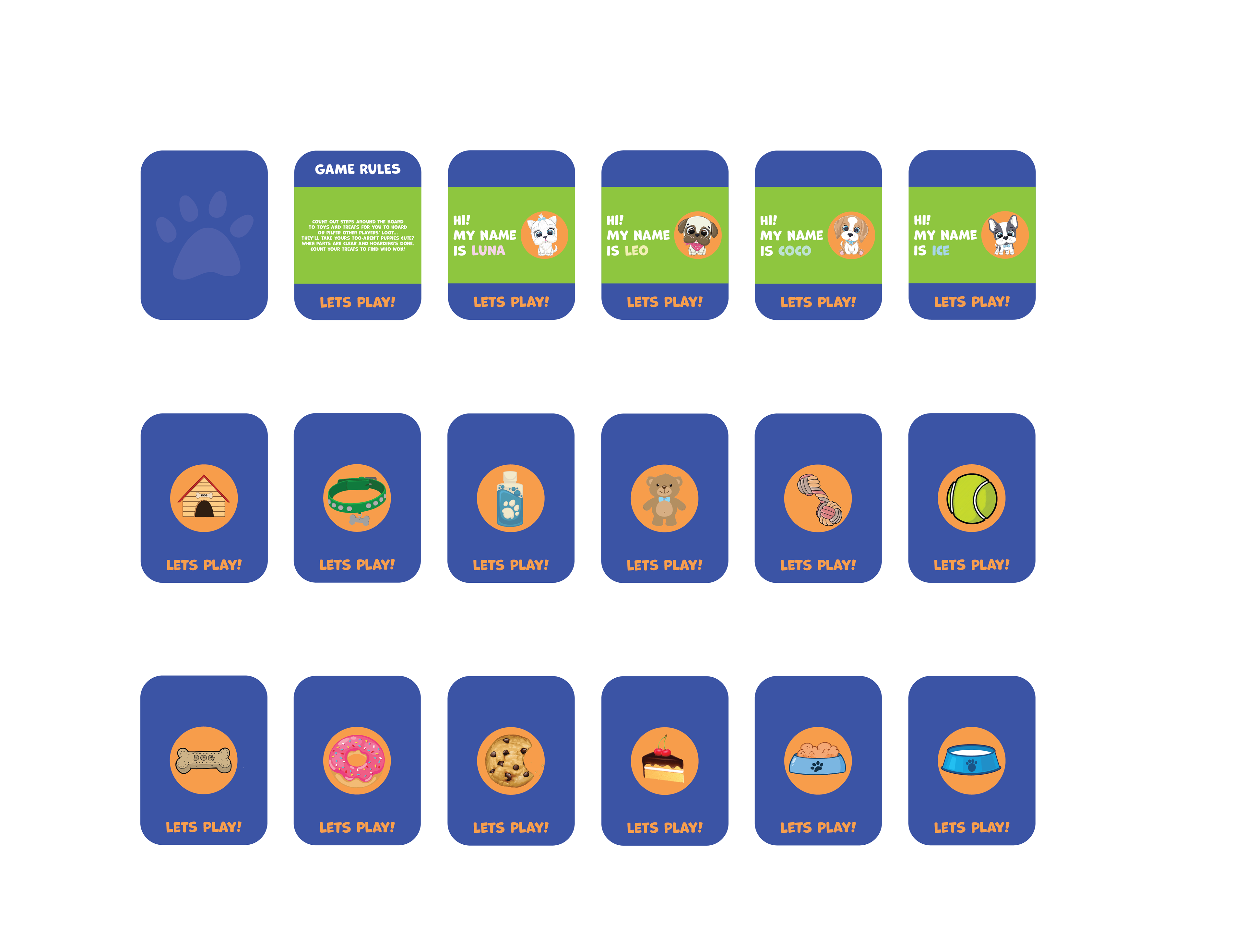 Puppy Fuffle is redesigned board game for ages 4 and up. I choose consistent color palette, circle elements and images of each character.